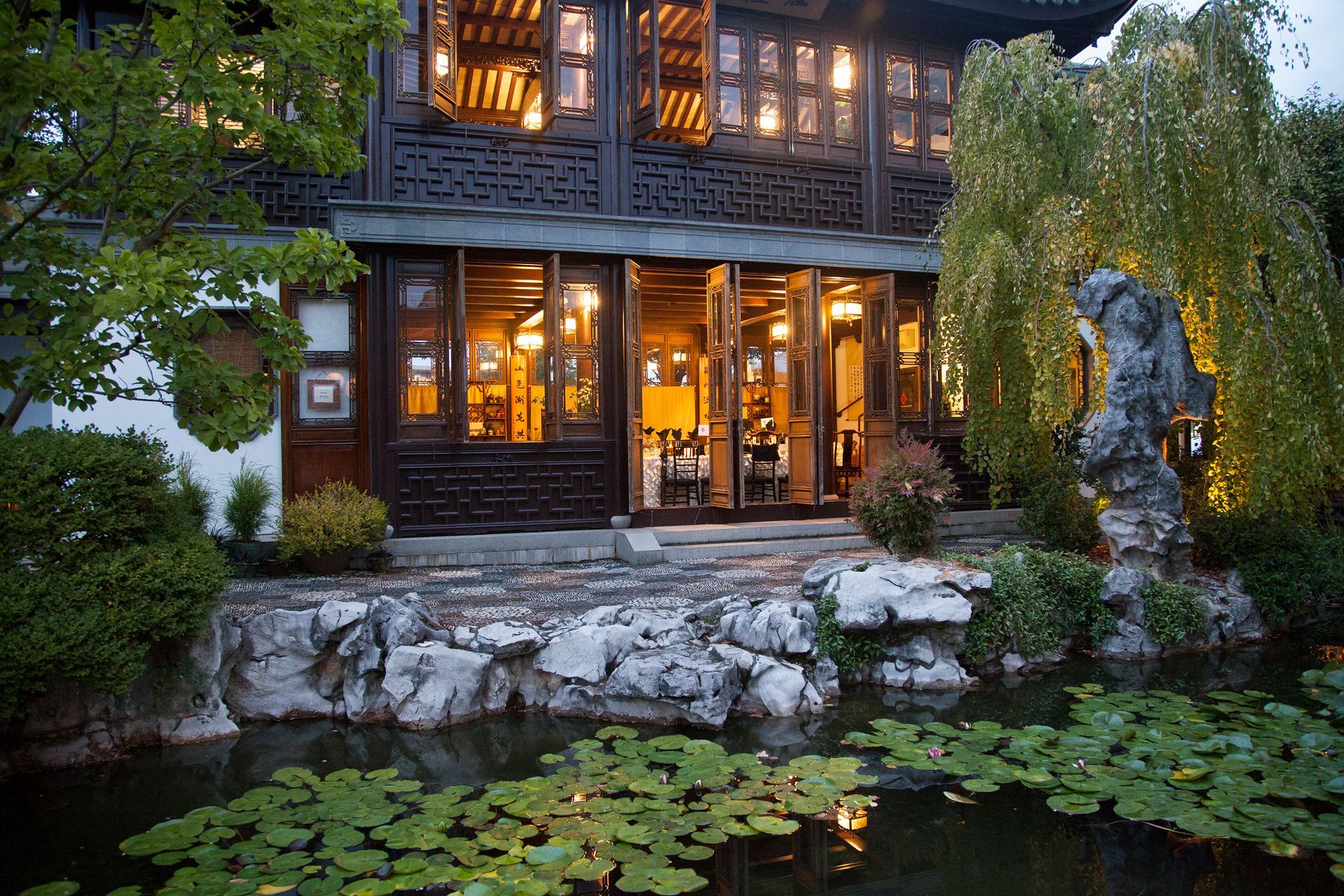 500 tons of rock, including Chinese scholar’s rocks from Lake Tai (Taihu stone), were brought from China and used in the garden. The garden’s grand opening was on September 14, 2000.