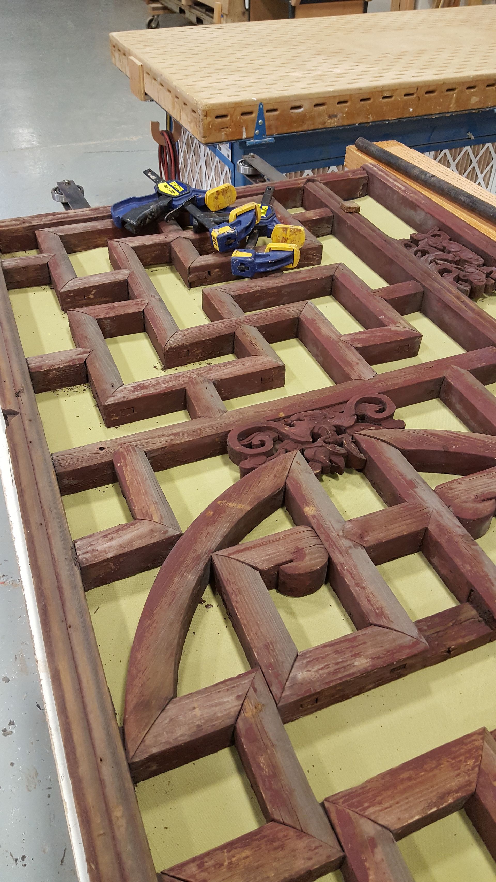 When the windows (originally handmade in China) were in need of repairs they called on Arciform. Thousands of feet of hand-carved details were sanded and stripped to restore each window to authenticity.