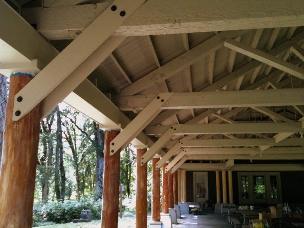 “Arciform, the general contractor, did a fabulous job… It definitely is worth taking the time to go look at how tight & precise their joinery is, especially at where the knee braces are let into the log columns (not easy to do!) & at the carpentry on the mitered column bases & capitals. They are true craftsmen. I’m very pleased with how this project turned out — it definitely restores the historical integrity, function, & beauty to the building!” – Heidi Overman, Construction Project Manager, Engineering & Design Division of the State of Oregon.