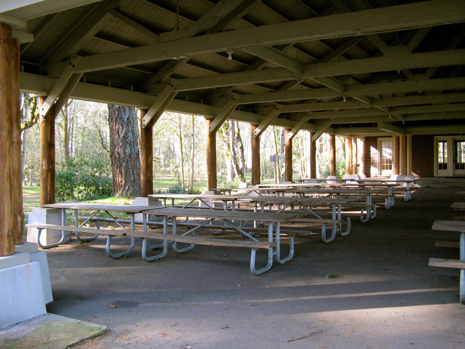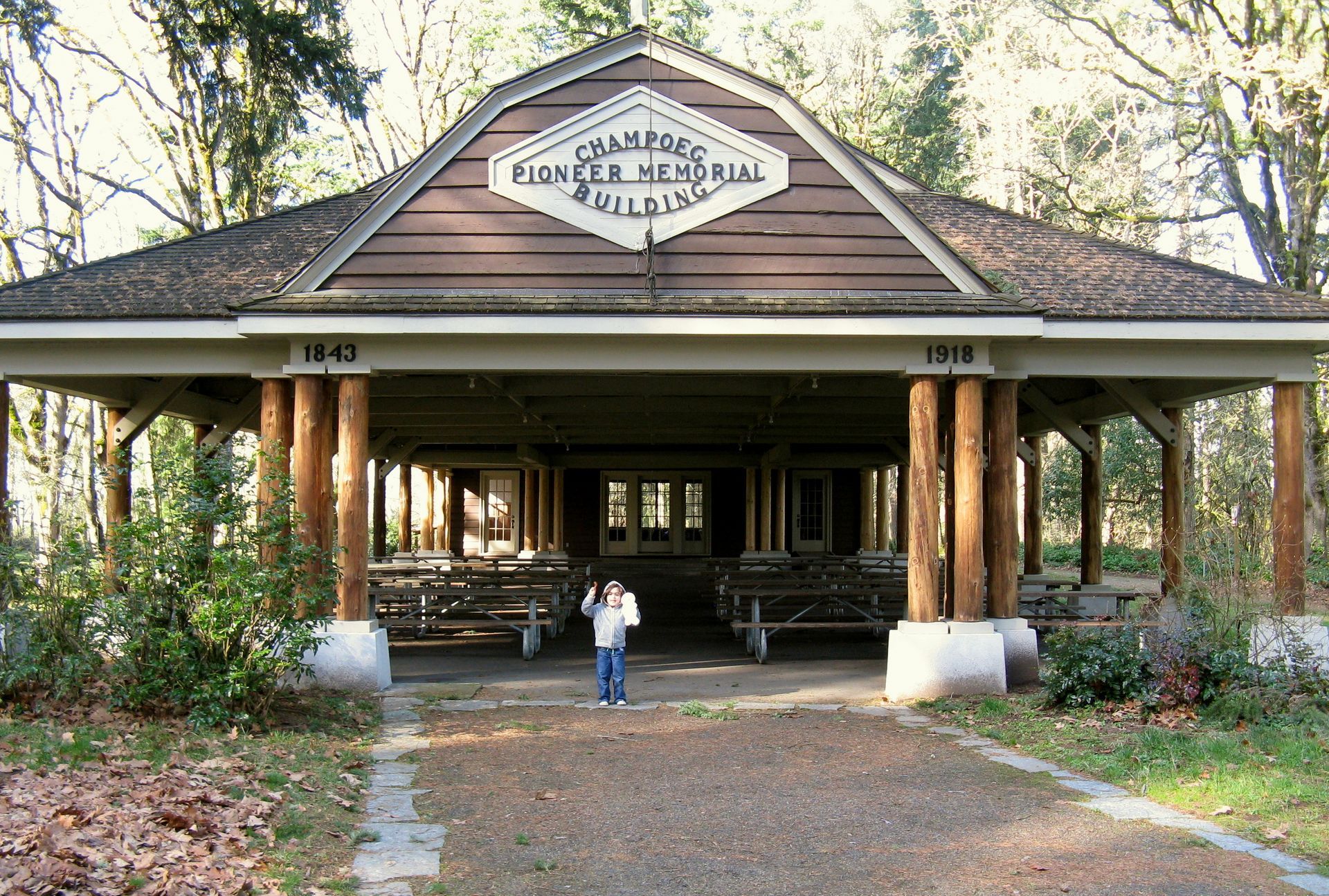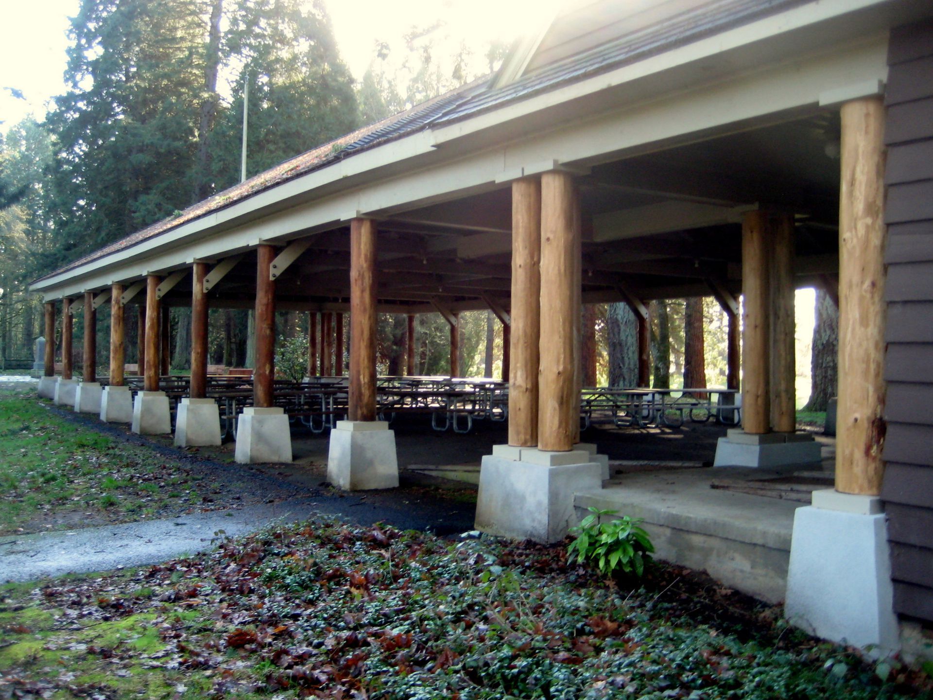 On May 2, 1843 a group of 102 farmers and trappers came together in the town of Champoeg to vote for a provisional government. This historic vote signified the creation of Oregon and was commemorated in 1901 with the dedication of Champoeg Park, which is now part of the US National Register of Historic Places. The Pioneer Memorial Building was built in 1922 to house annual celebrations honoring that momentous day in 1843. Nearly a century later, the logs and beams that provided structural support for the pavilion were heavily infested with carpenter ants. Arciform was contracted for renovation and seismic retrofitting of the historic structure. New logs were locally sourced from Silver Falls Park and installed using custom fabricated seismic hold-downs.The process included peeling the trees, then lifting and supporting the structure while the old creosote-treated logs were removed. Each post base was recreated with kneebrace joinery.