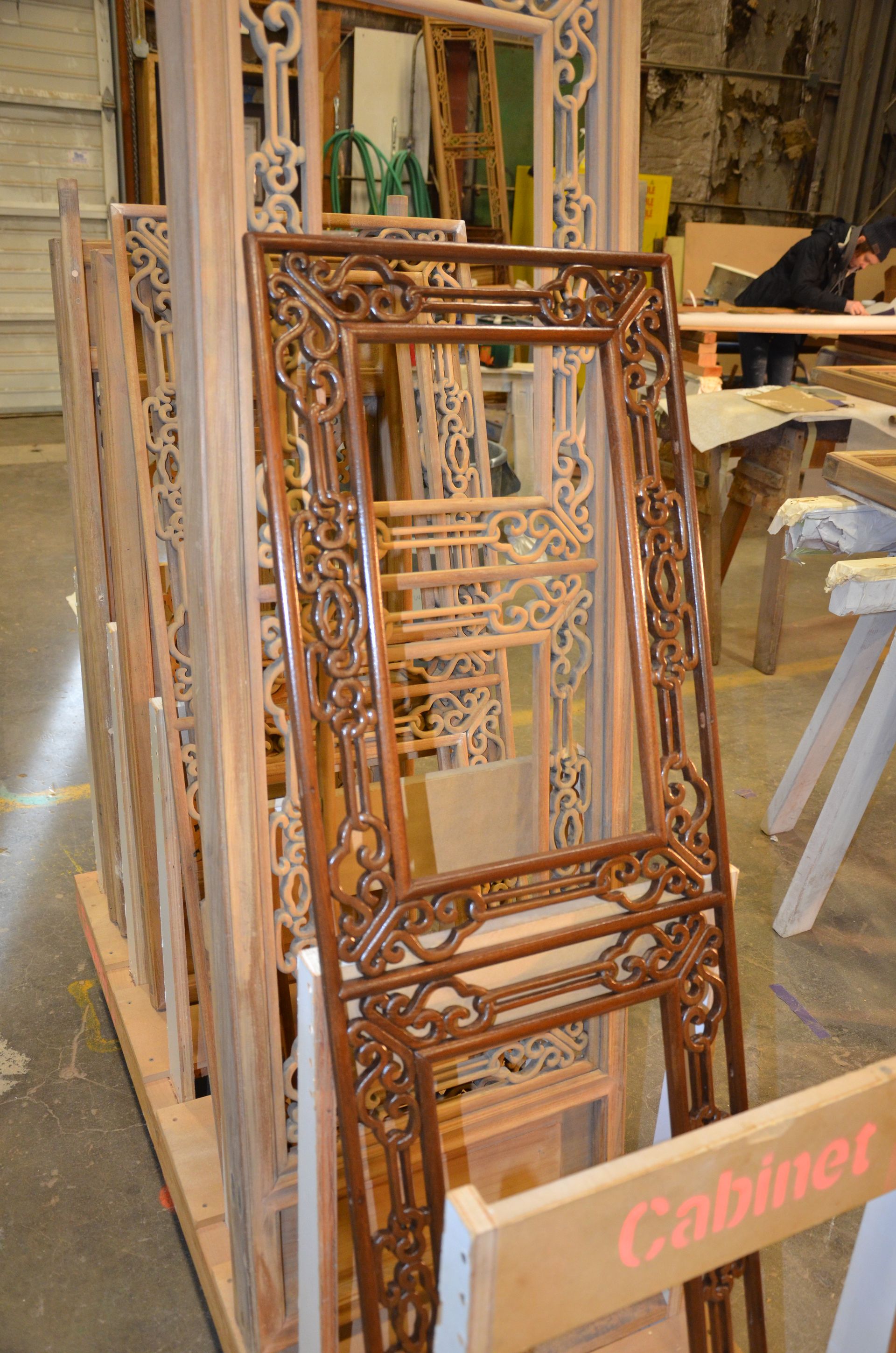 When the windows (originally handmade in China) were in need of repairs they called on Arciform. Thousands of feet of hand-carved details were sanded and stripped to restore each window to authenticity.