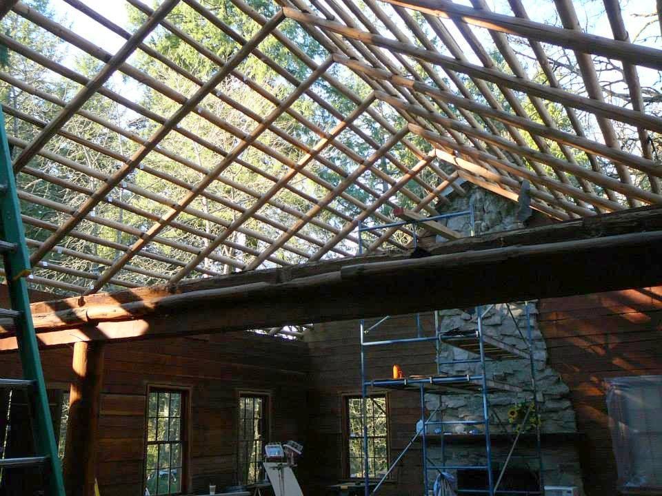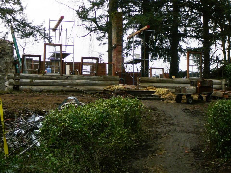 The cabin's picturesque perch on the bank of the Willamette River eventually proved dangerous as the waters crept alarmingly close, and in 2013 Arciform was contracted move the cabin to the Newell House Museum Complex. This involved careful documentation and cataloging, disassembling, moving and storing every architectural element from door jamb to purlin. A unique challenge presented itself when the time came to move the characteristic logs that make up the walls of the cabin, as some of them are up to forty feet long! Where rotted materials necessitated replacement, historically accurate cut and hewn logs were incorporated. At the new site the cabin was rebuilt with the addition of radiant floor heat and insulation at the vaulted roof for the comfort of visitors.