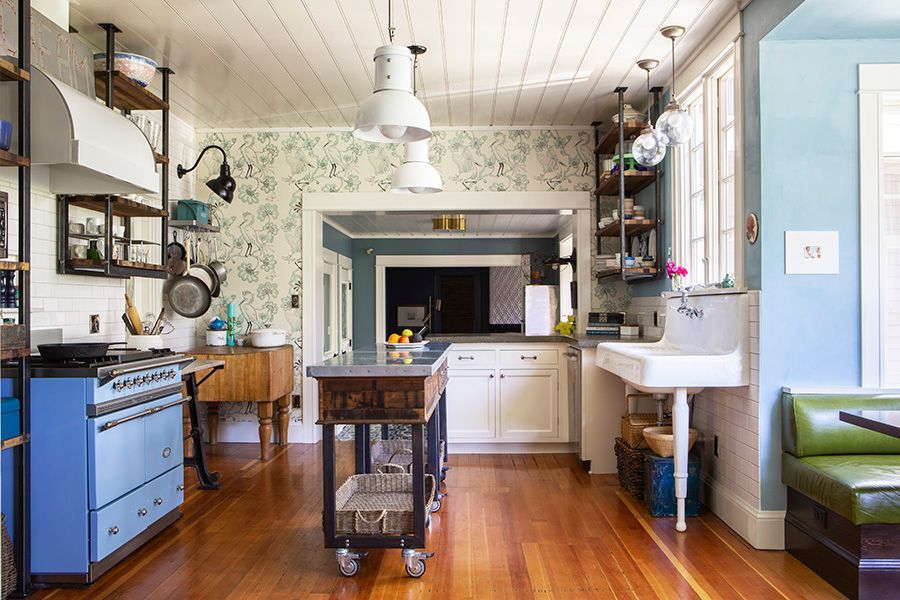 Douglas Fir shiplap on walls and ceiling were sourced from local homes being demolished and from Portland area reclaimed wood vendors